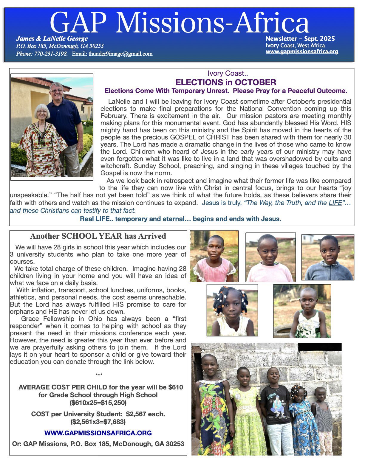 This update speaks about the elections, some temporary unrest, a new school year, and more.